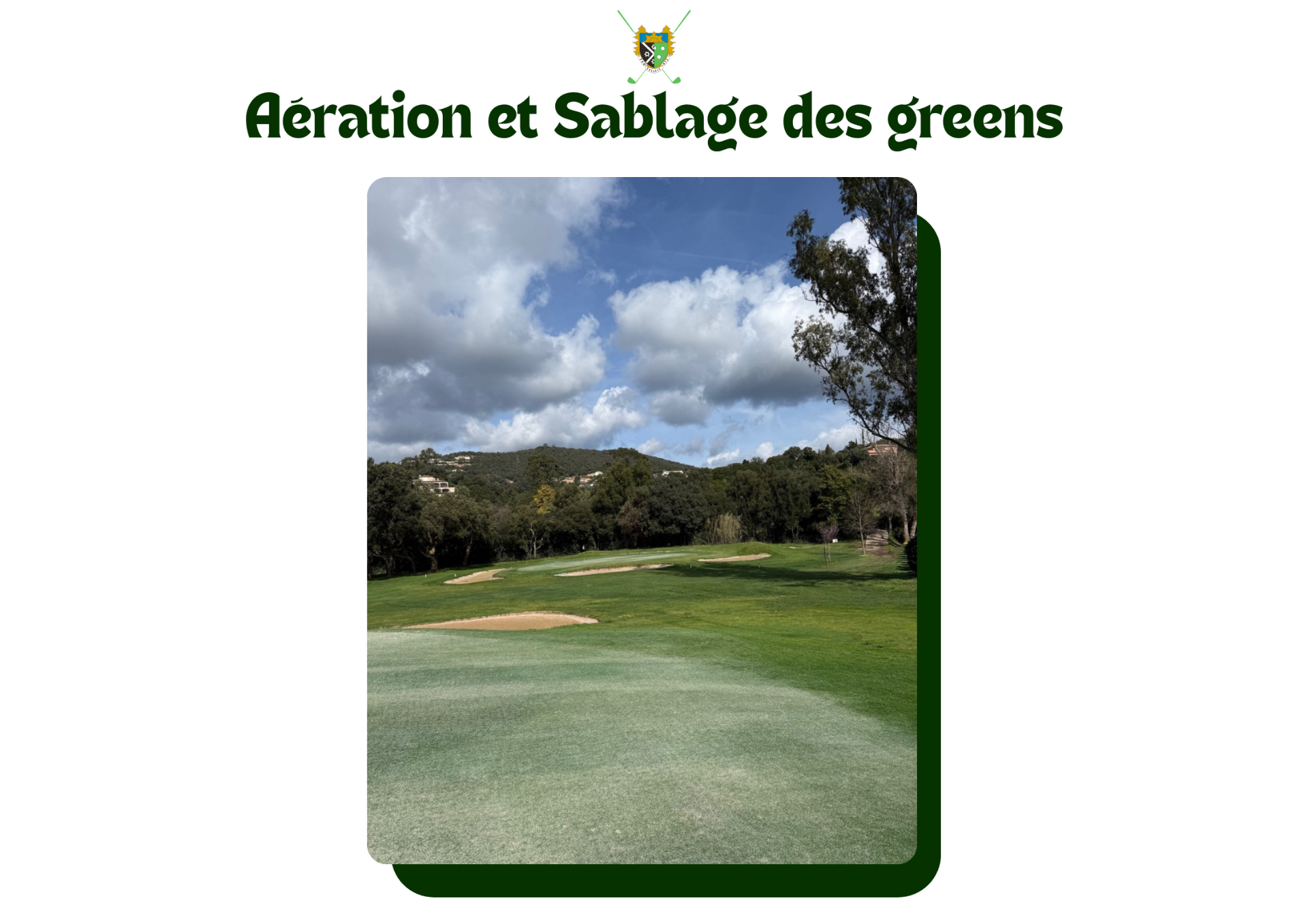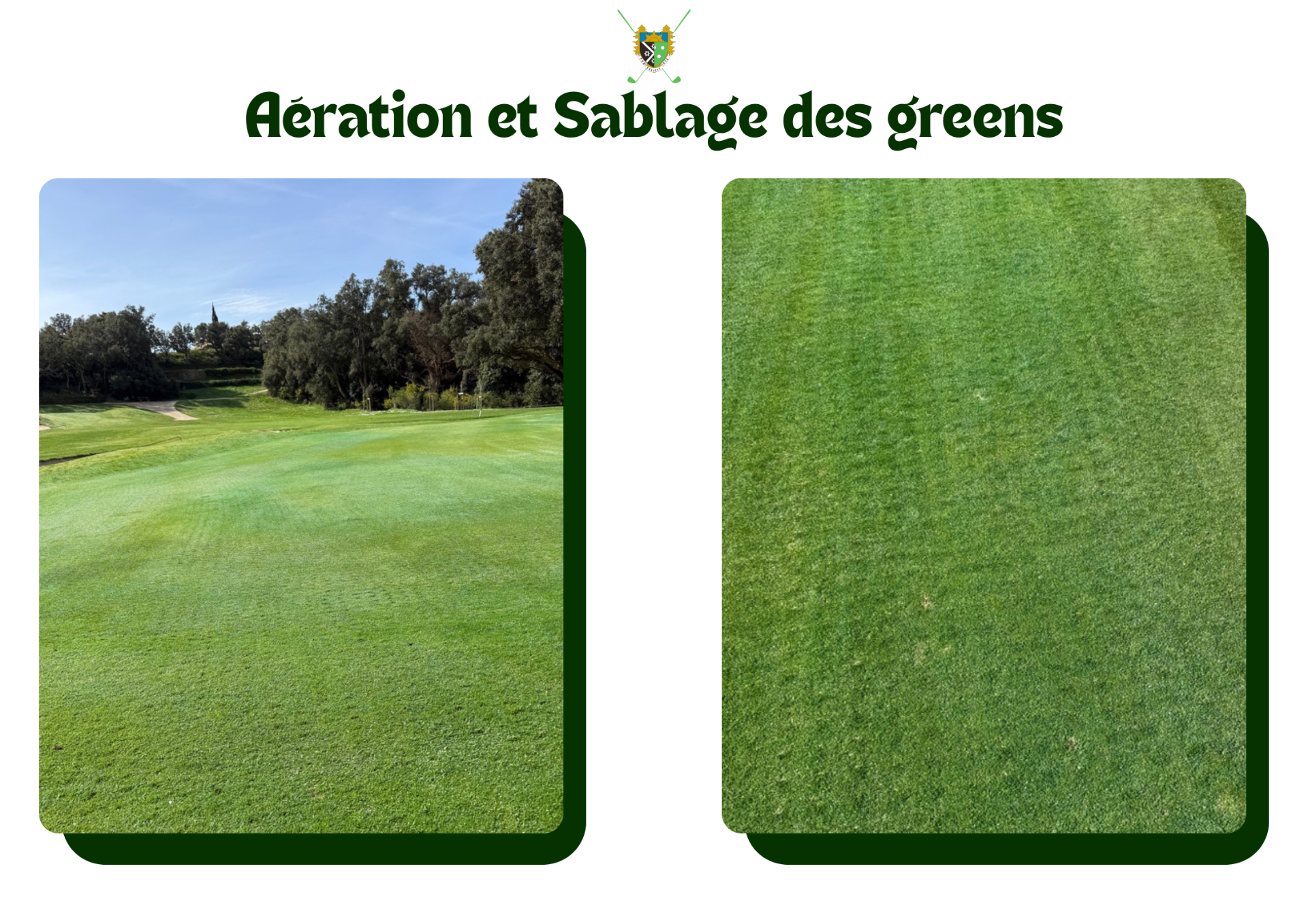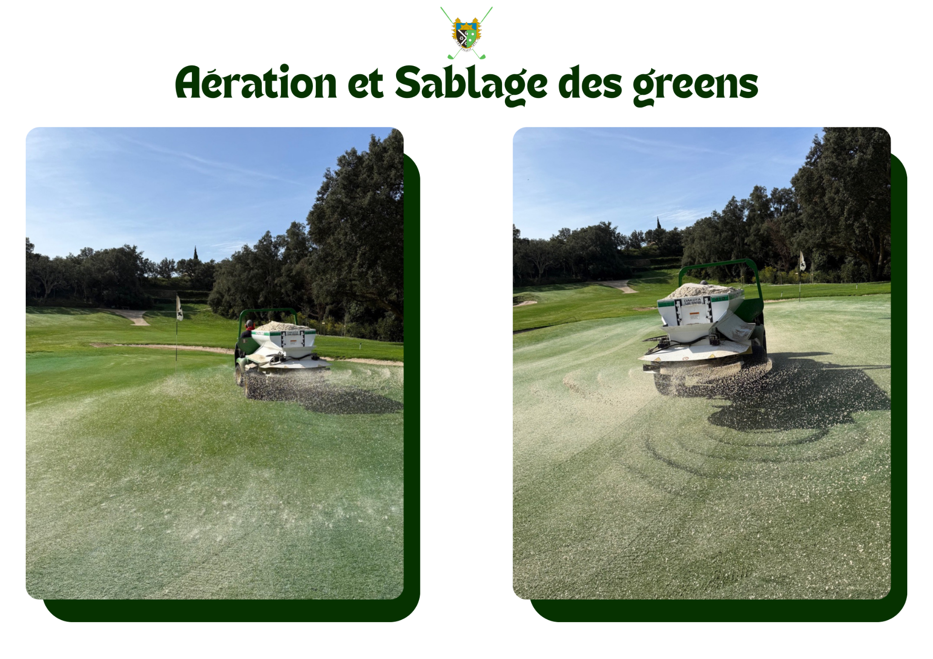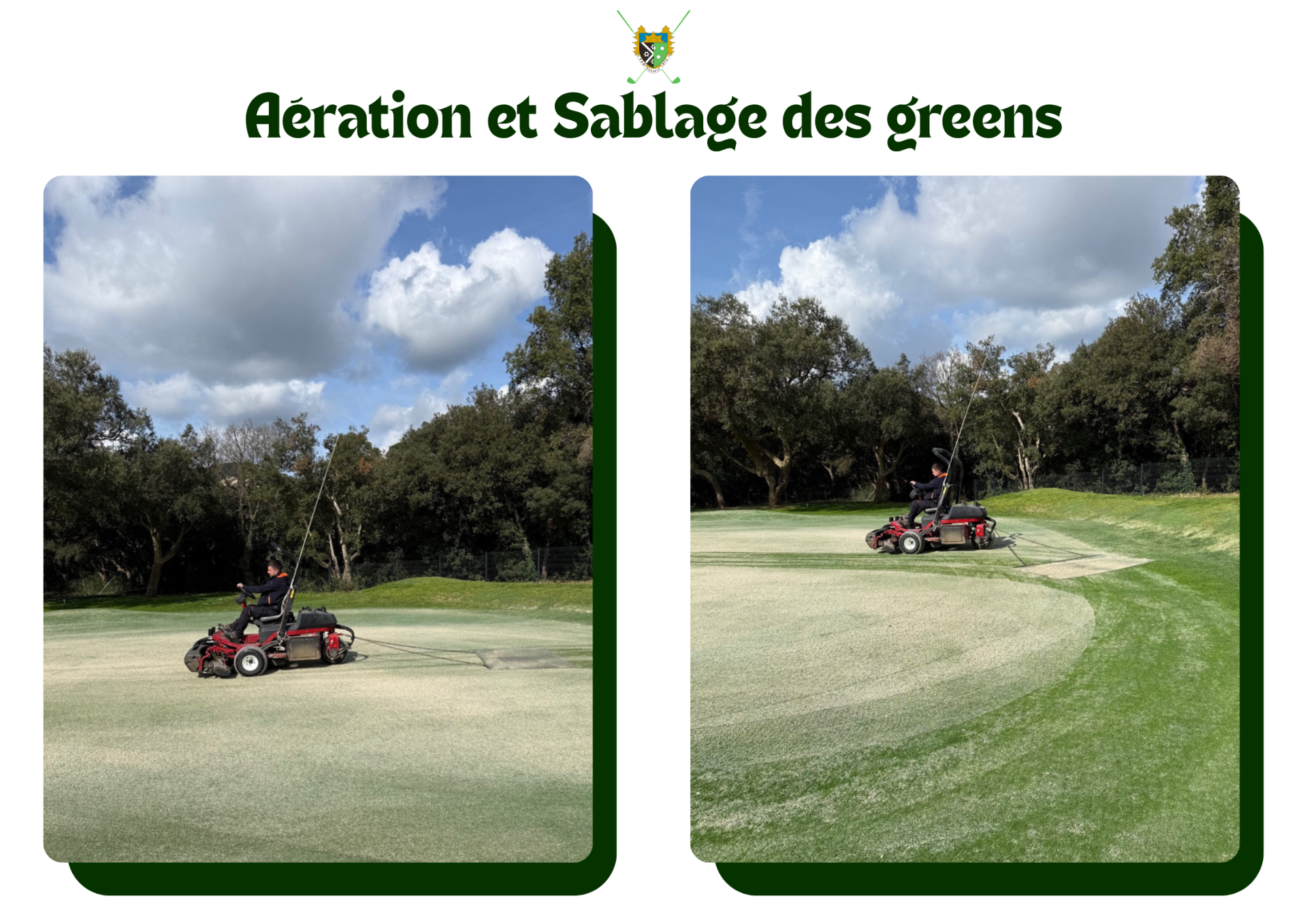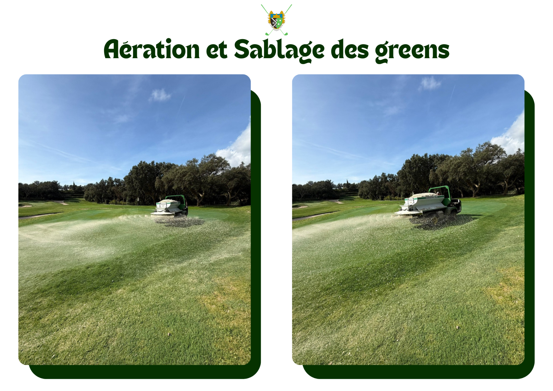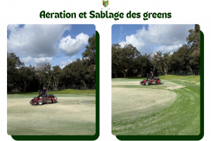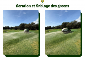 Voici quelques photos de l'aération et du sablage de nos greens