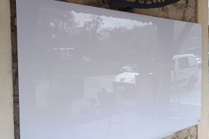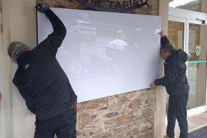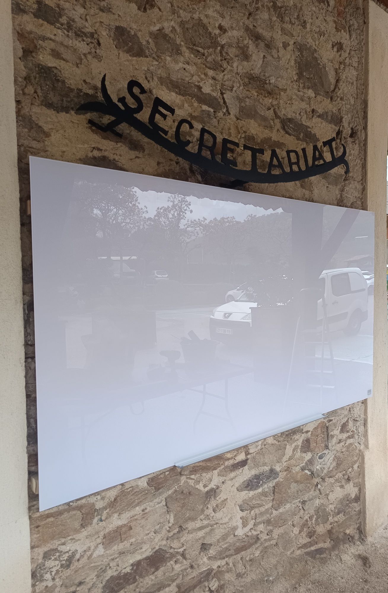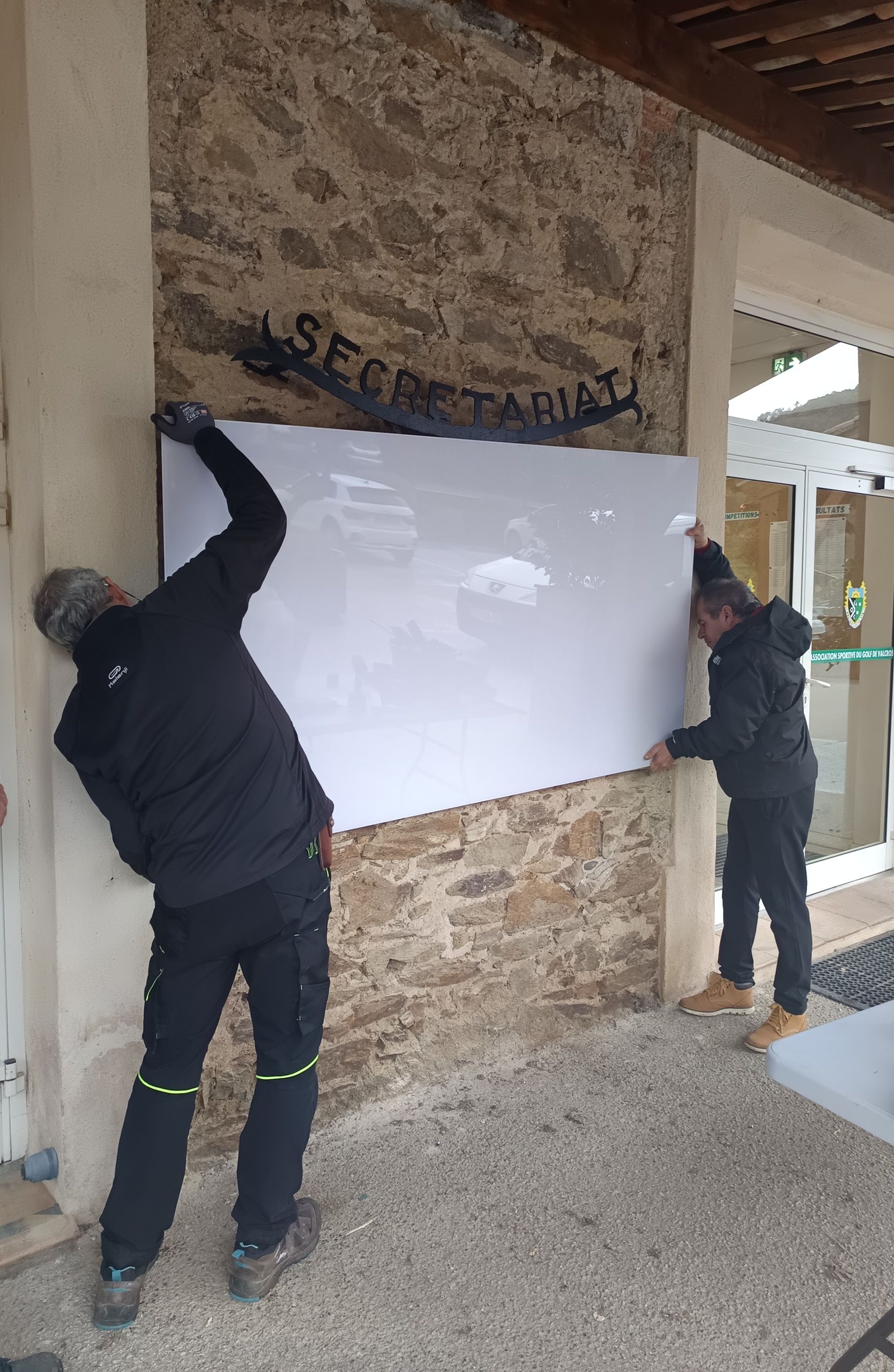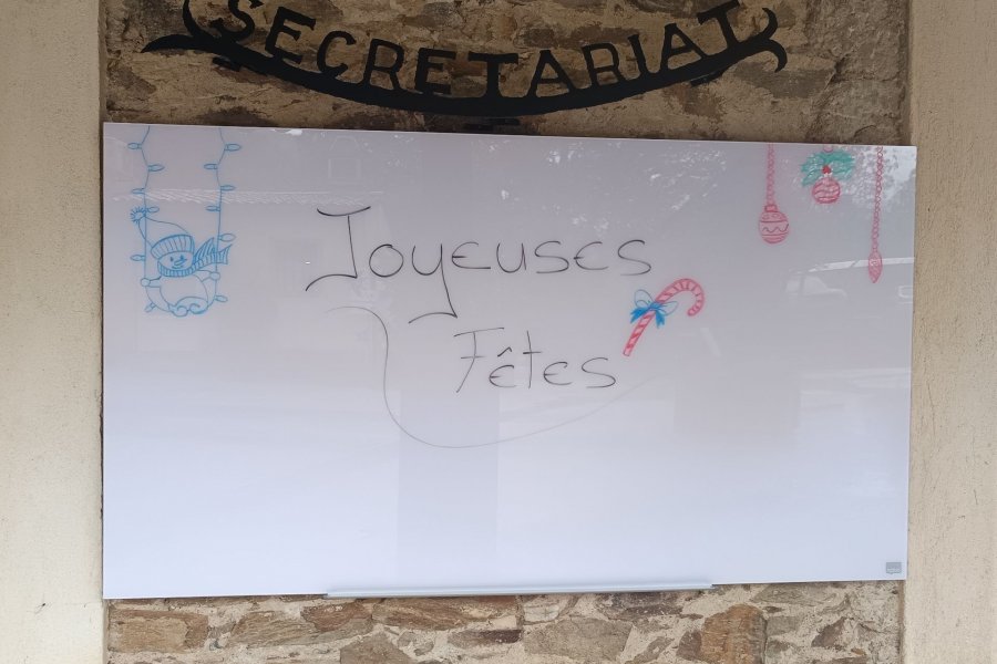 Ce matin, malgré la pluie, le tableau d'affichage à l'extérieur de l'accueil