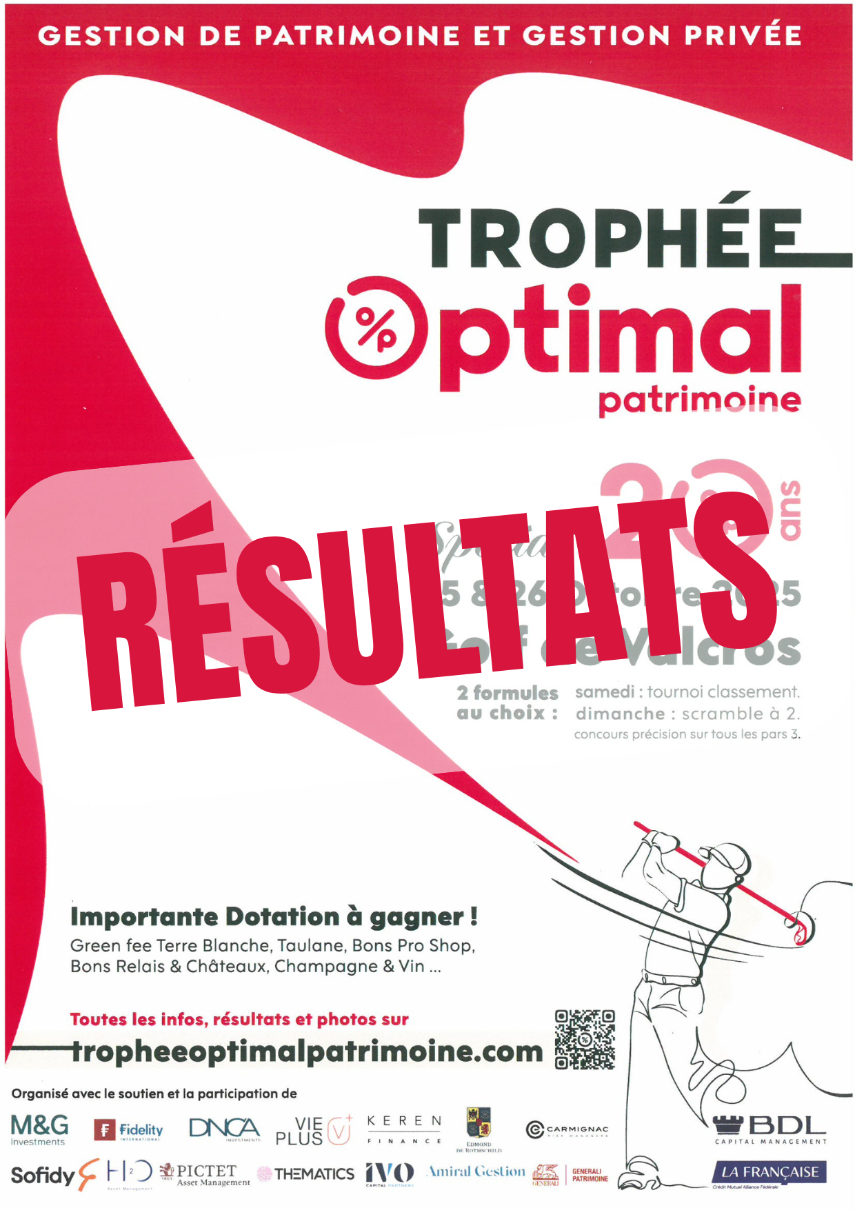 Le Trophée Optimal Patrimoine s'est déroulé les 25 & 26 octobre 2025, avec une formule Stableford individuel le samedi et un Scramble à 2 le dimanche.