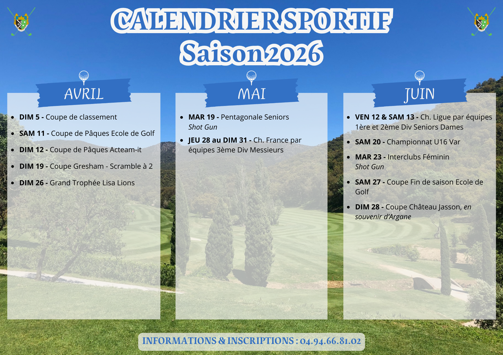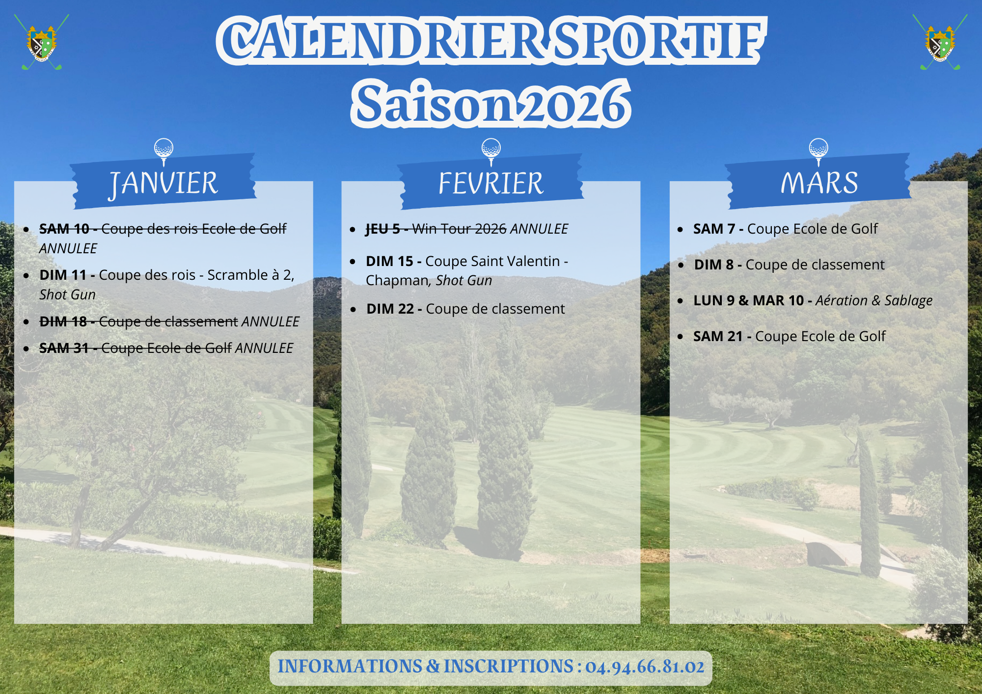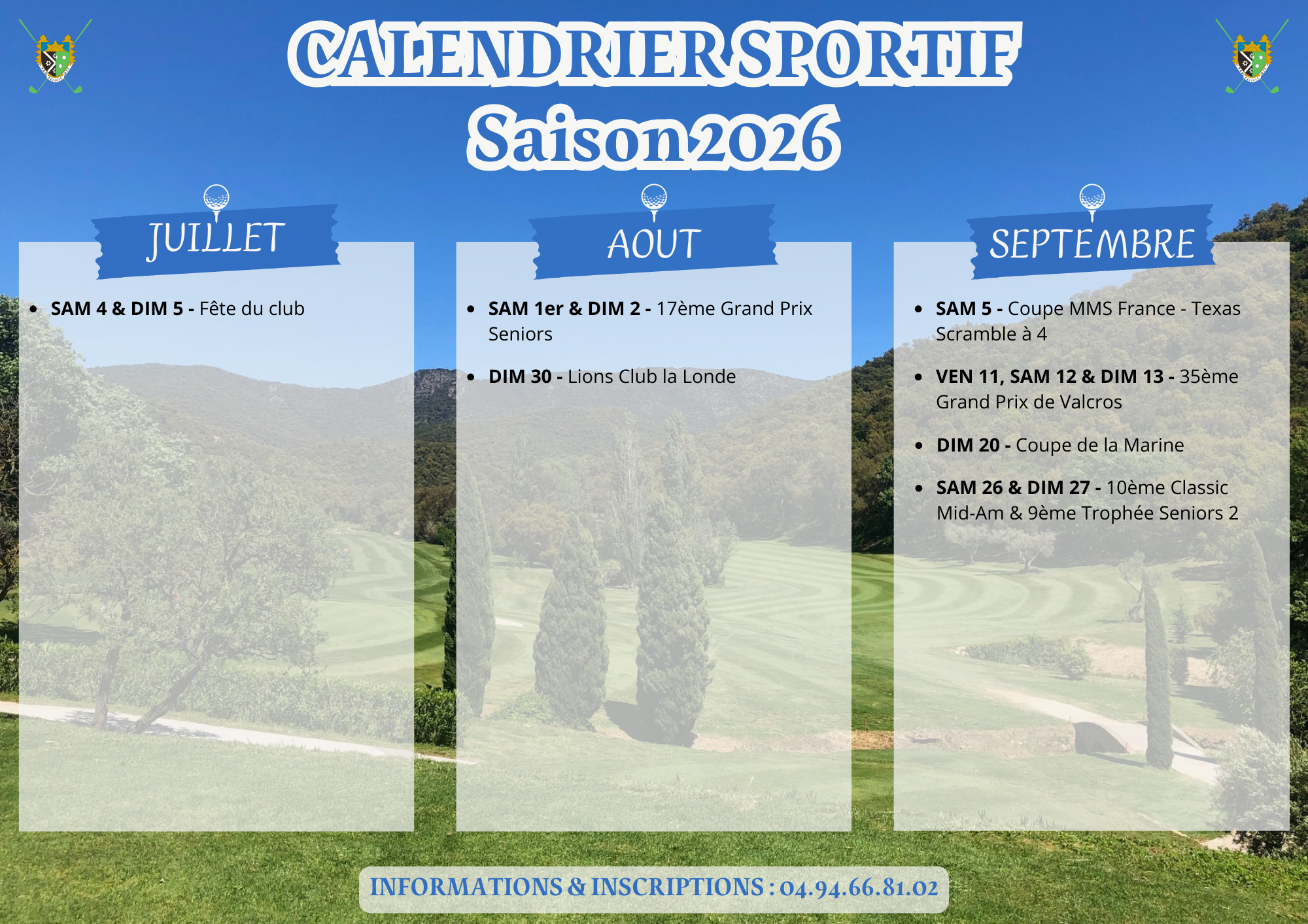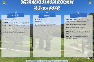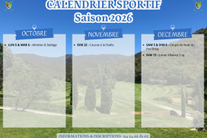 - Coupe de la CSA Golf Marine Toulon le Dimanche 20 septembre 2026 UNIQUEMENT (journée du samedi 19 septembre 2026 annulée)