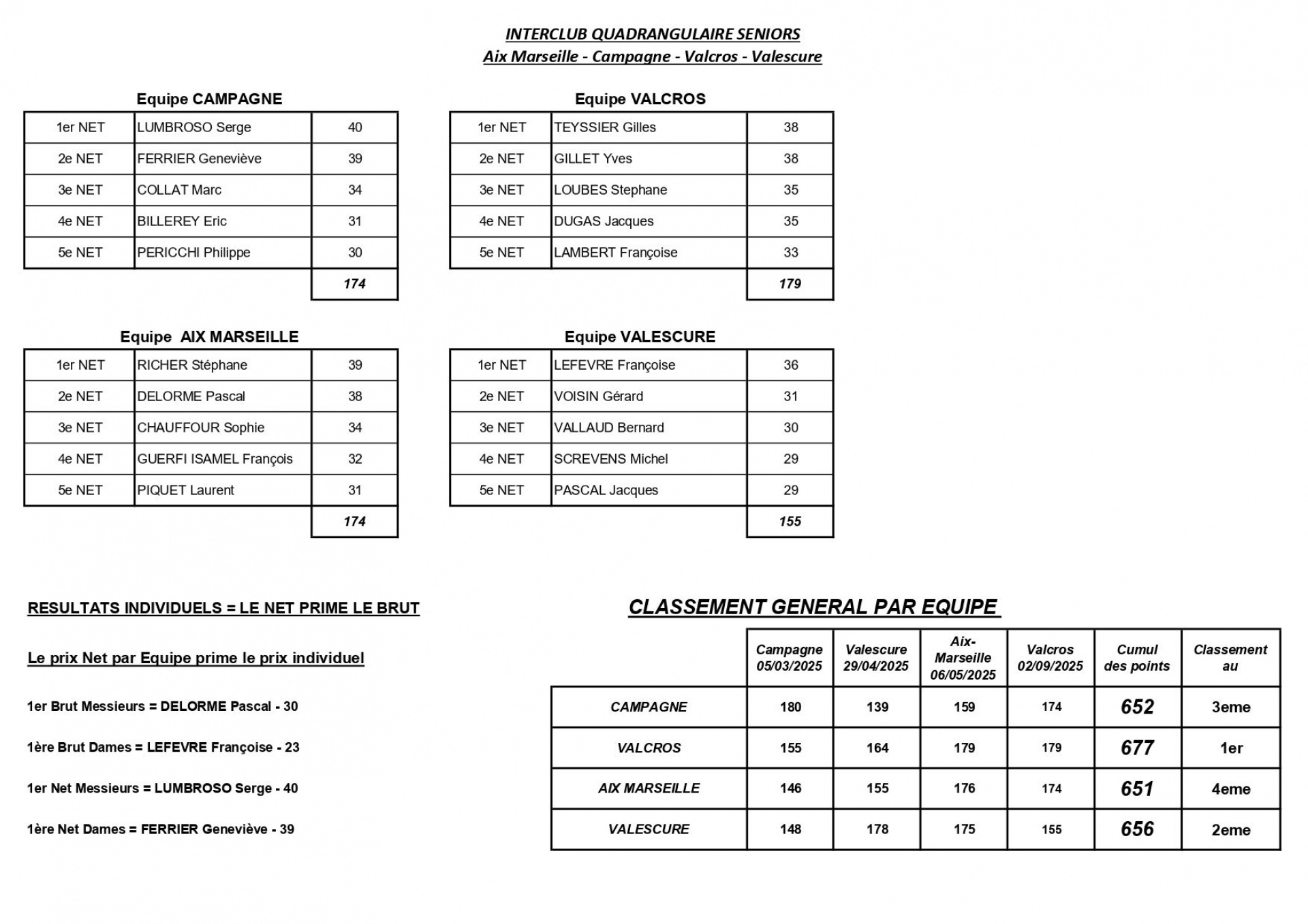 - Clubs participants : NÎMES CAMPAGNE - AIX MARSEILLE - VALESCURE - VALCROS