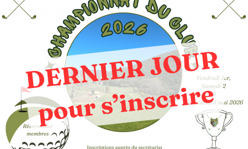 Le Club House reste ouvert et maintient le service minimum de restauration en cas de pluie et/ou de fermeture de parcours.
