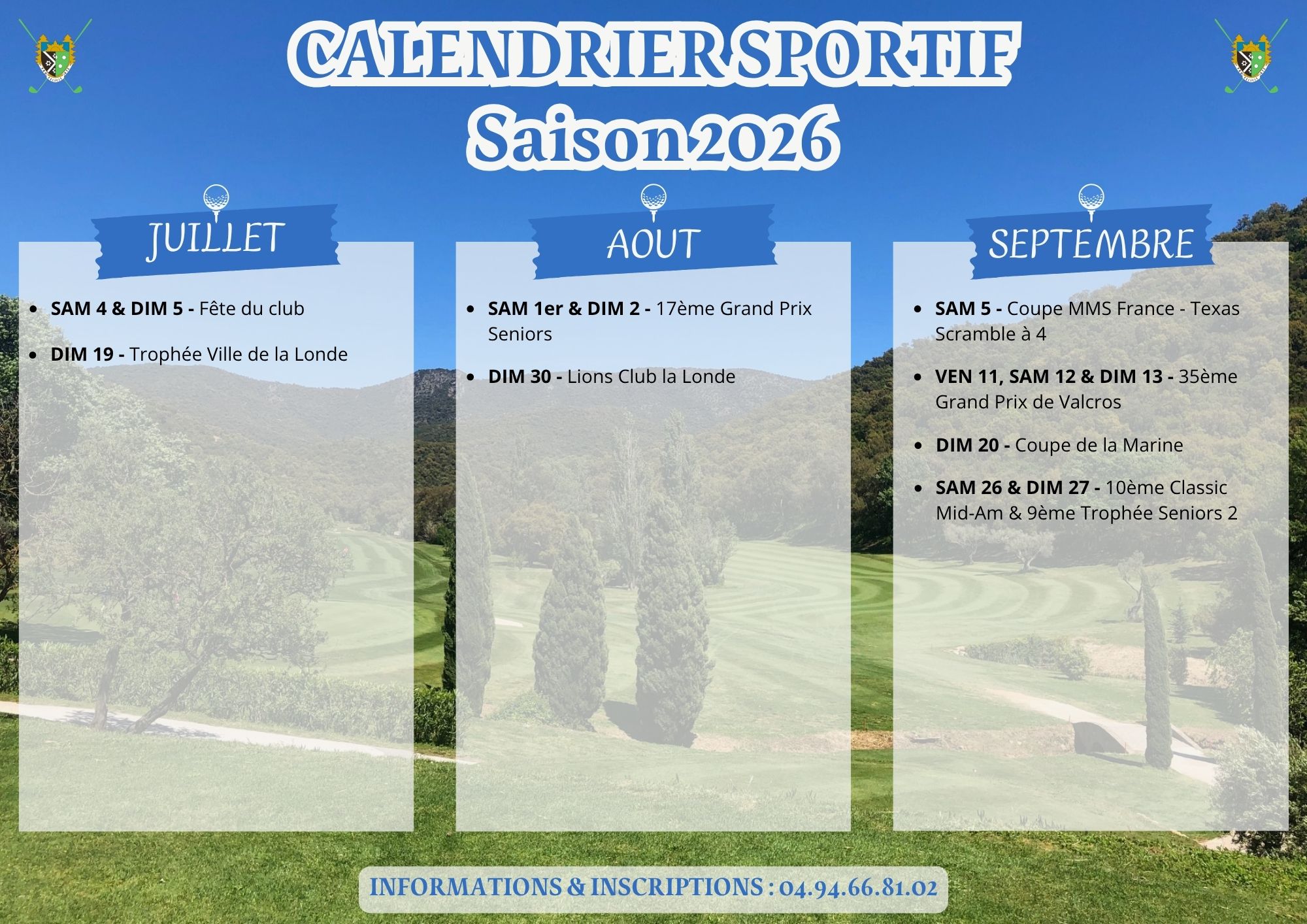 Mise à jour du Calendrier Sportif 2026 :