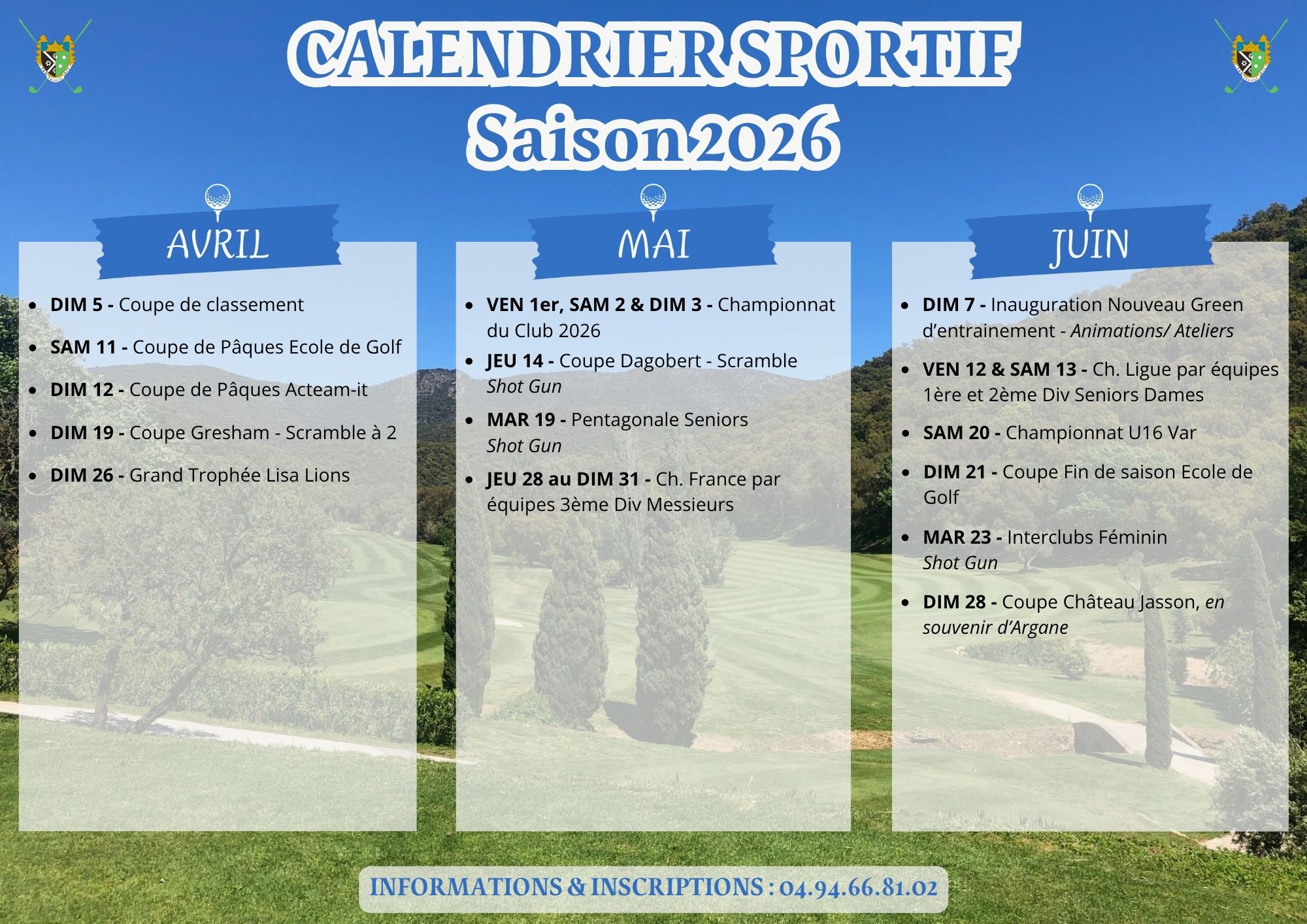 - Inauguration du nouveau Green d’entrainement le Dimanche 7 juin 2026