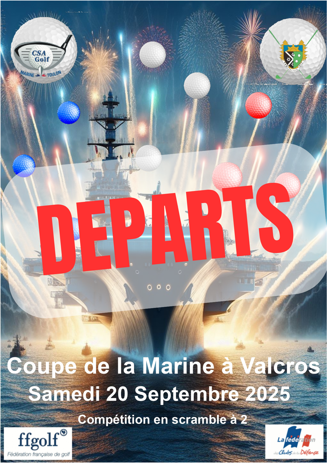 Afin de consulter les départs du Scramble à 2 du samedi 20 septembre 2025 pour la Coupe CSA Golf Marine Toulon,