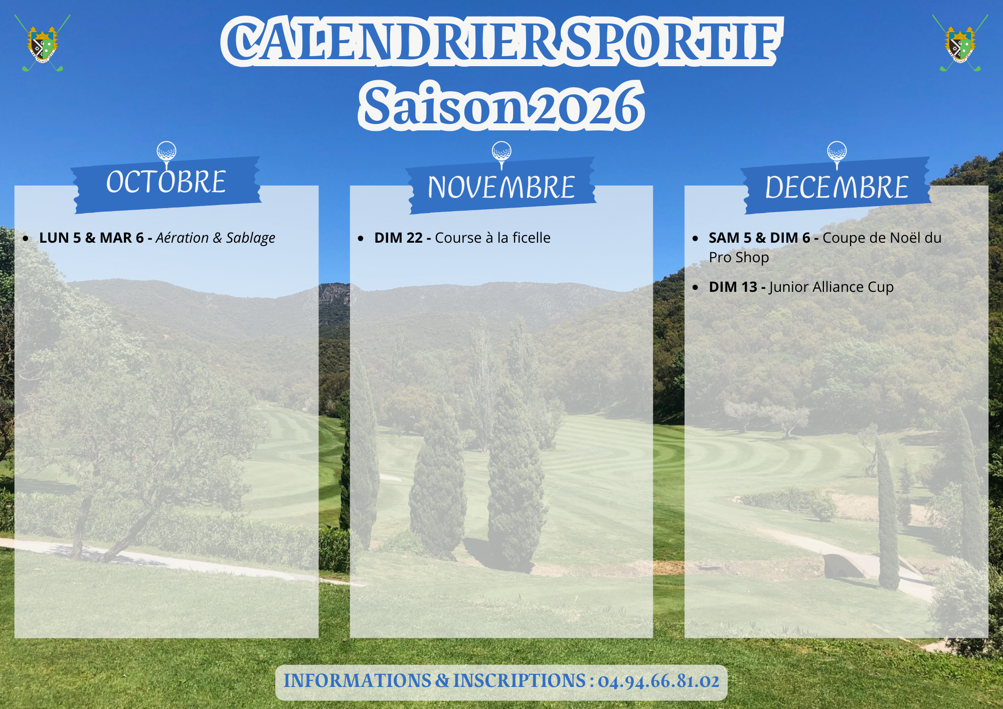 - Coupe de la CSA Golf Marine Toulon le Dimanche 20 septembre 2026 UNIQUEMENT (journée du samedi 19 septembre 2026 annulée)