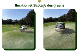 Voici quelques photos de l'aération et du sablage de nos greens