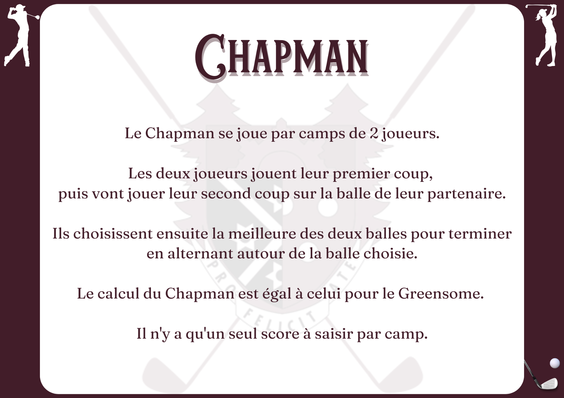 Le calcul du Chapman est égal à celui pour le Greensome.